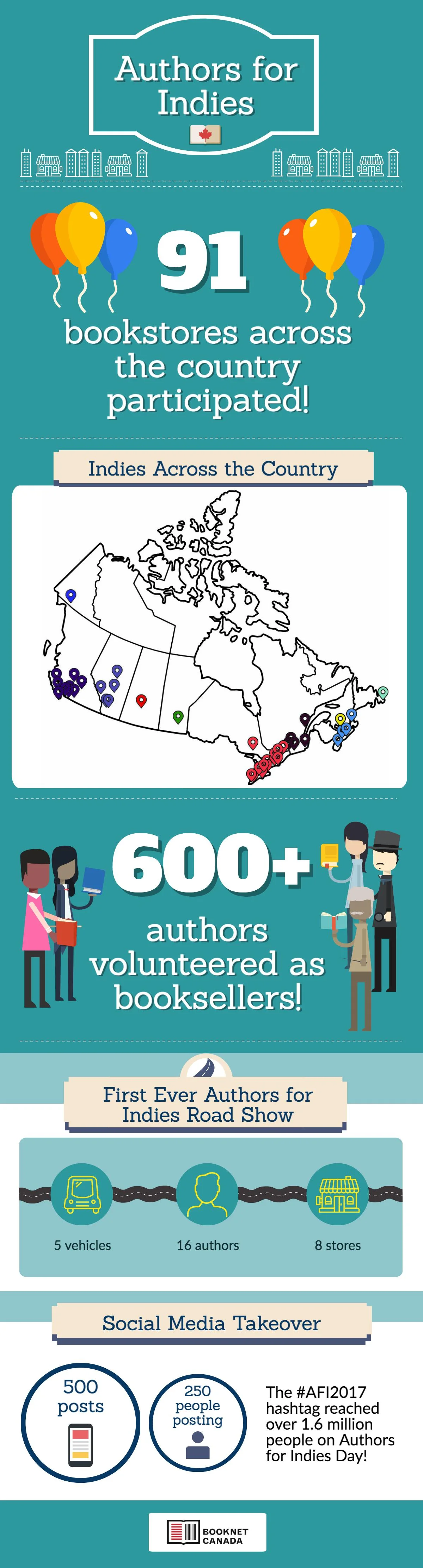 - 91 bookstores across Canada participated in Authors for Indies Day.