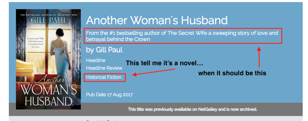 As the adage goes: metadata is marketing. So let’s use that “subtitle” in search. When you look up "From the #1 bestselling author" Another Woman's Husband doesn't even come up as the top search! More importantly, the reader starts asking questions. Which Crown? What country? What era? Fact or fiction?
