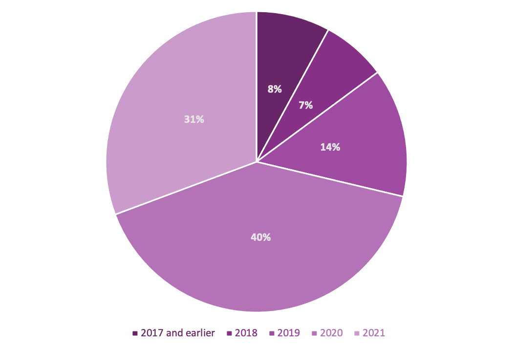 Of the top 100 jigsaw puzzles for 2021, only 31% were published in 2021, while 40% were published in 2020, 14% in 2019, 7% each in 2018, and 8% in 2017 or earlier.
