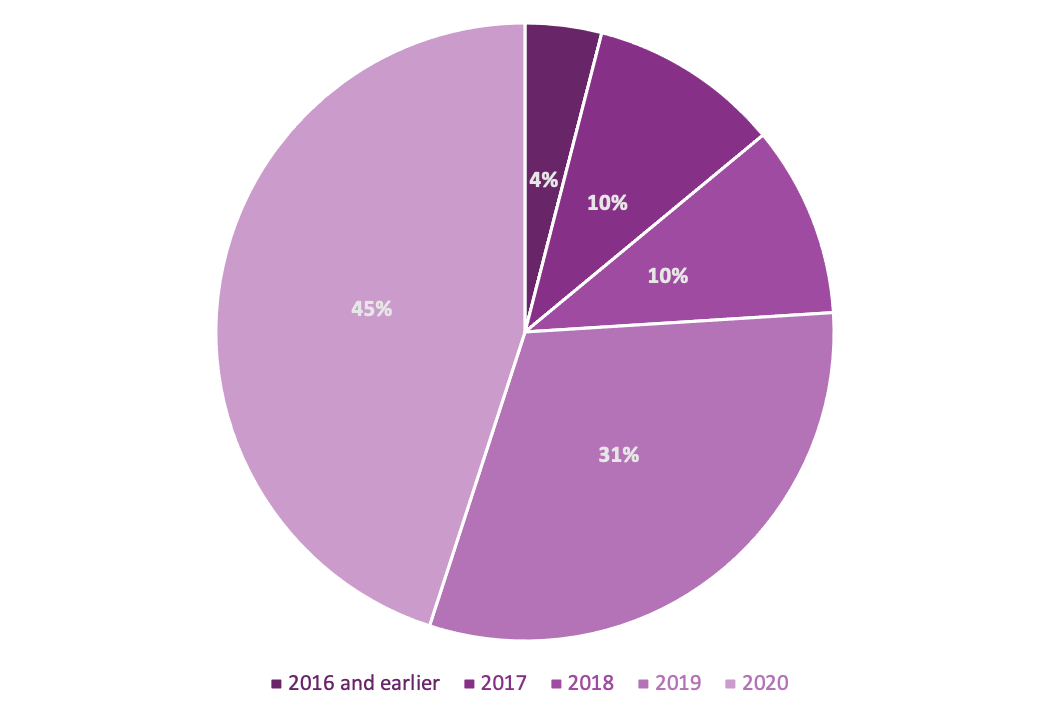 Of these top 100 jigsaw puzzles, 45% of them were published in 2020, 31% in 2019, 10% each in 2018 and 2017, and 4% in 2016 or earlier.